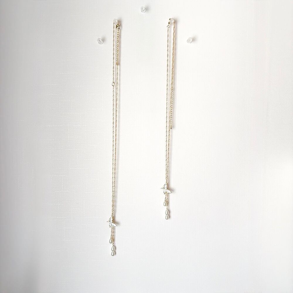 長さ調整2段階バタフライ×パールトップ スクリューチェーンネックレス