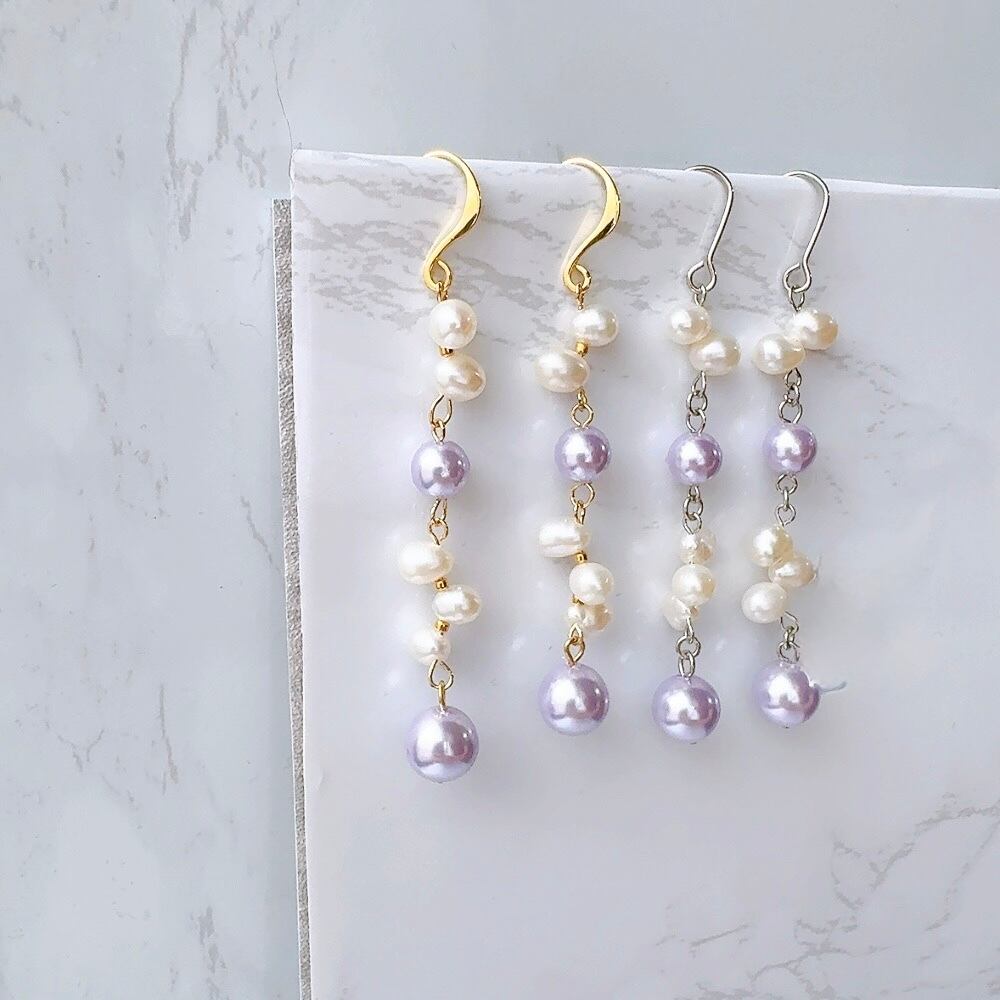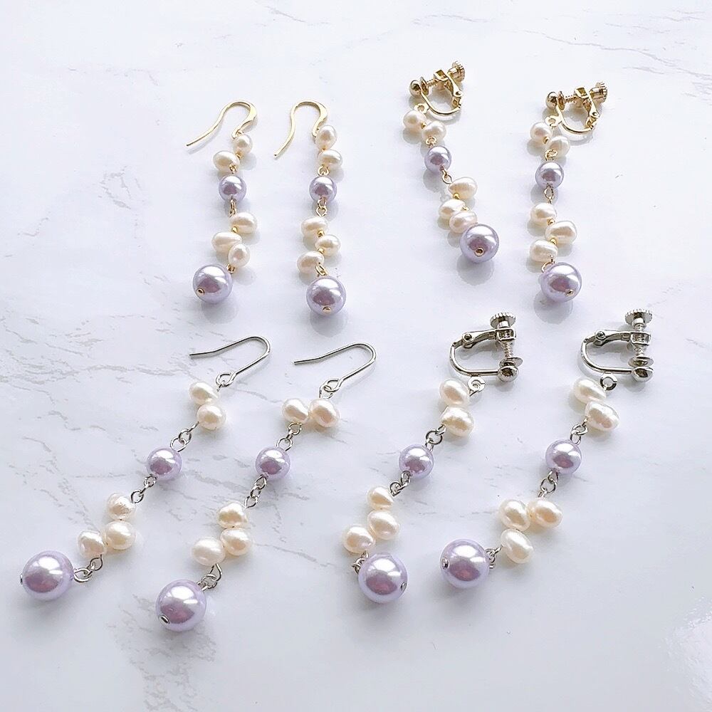 ラベンダーパール×淡水パールイヤリング・ピアス