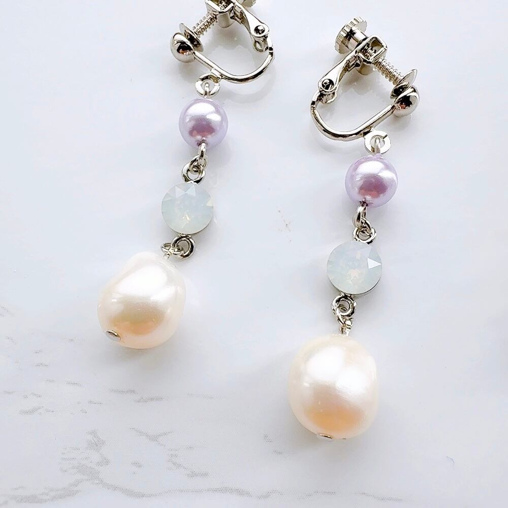 ラベンダーパール×淡水パールショートイヤリング・ピアス