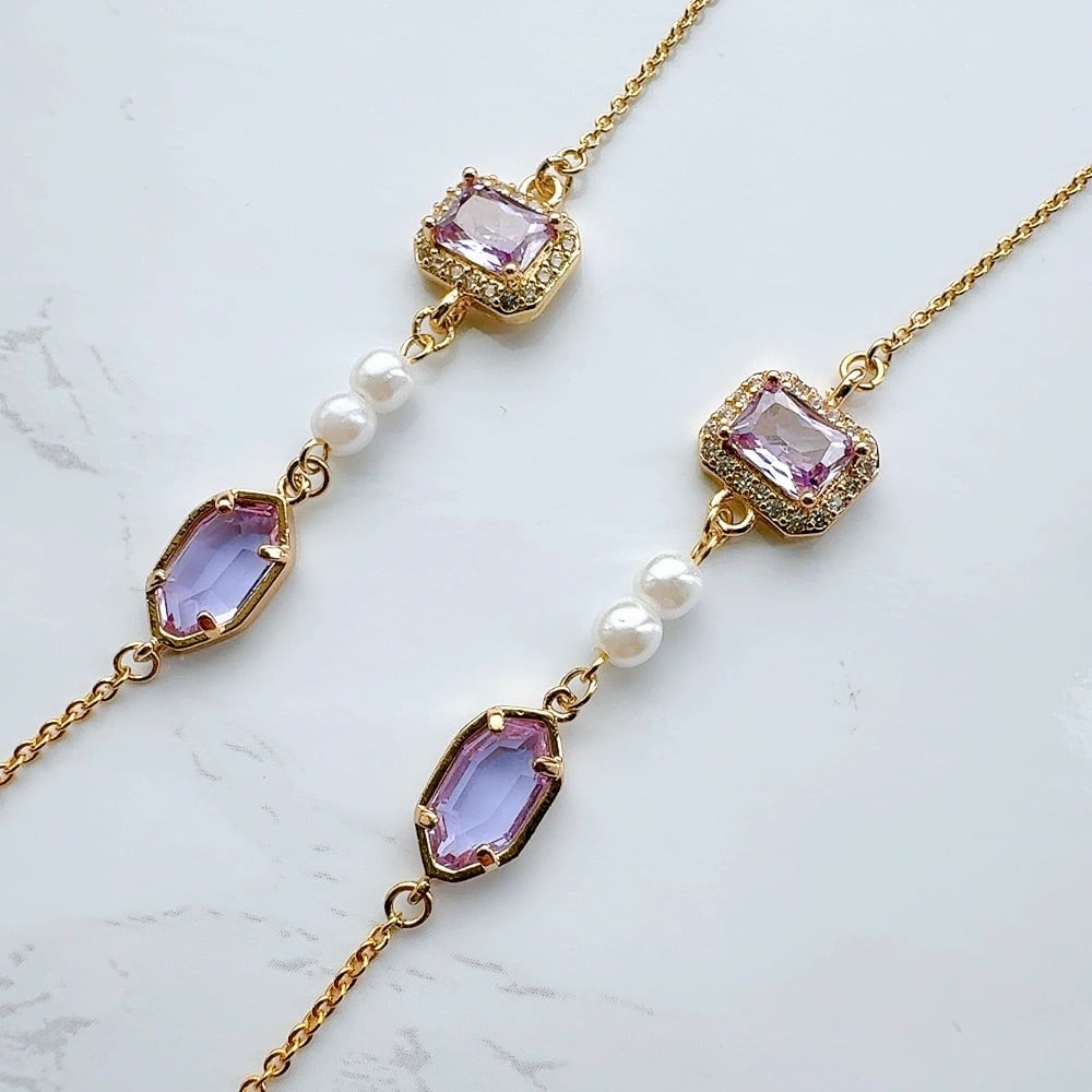 メガネ着用時はお顔周りを華やかに演出するメガネチェーン。