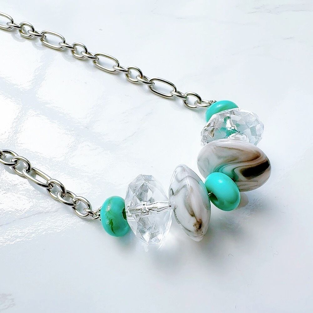 サージカルステンレスチェーンなので、金属アレルギーの方にも着けていただけやすいネックレスです。