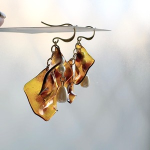 ヒョウ柄のようなべっ甲柄の花びらパーツのイヤリング・ピアス。