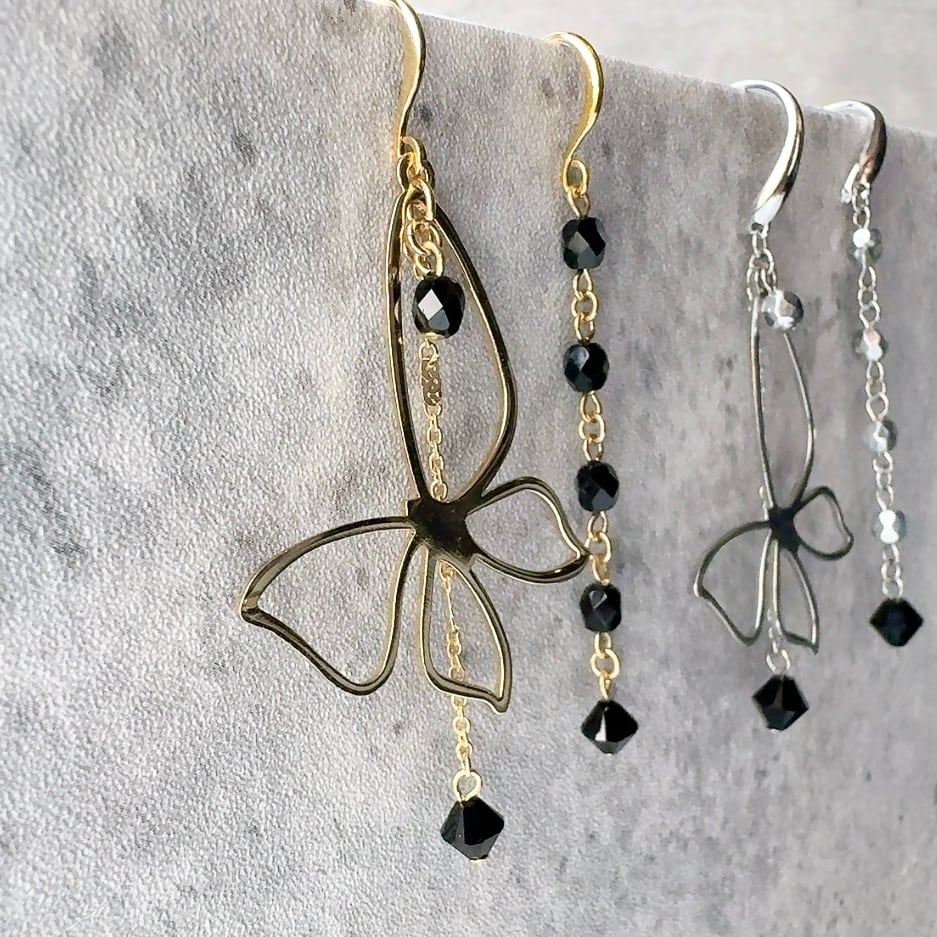大きめモチーフのバタフライアシンメトリーイヤリング・ピアス。