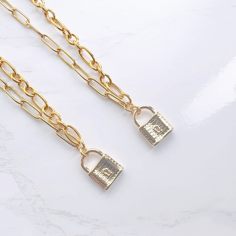 存在感のあるチェーンと南京錠のキーチャームがポイントで、シンプルなトップスのアクセントになり、こちらひとつでおしゃれに早替わり!