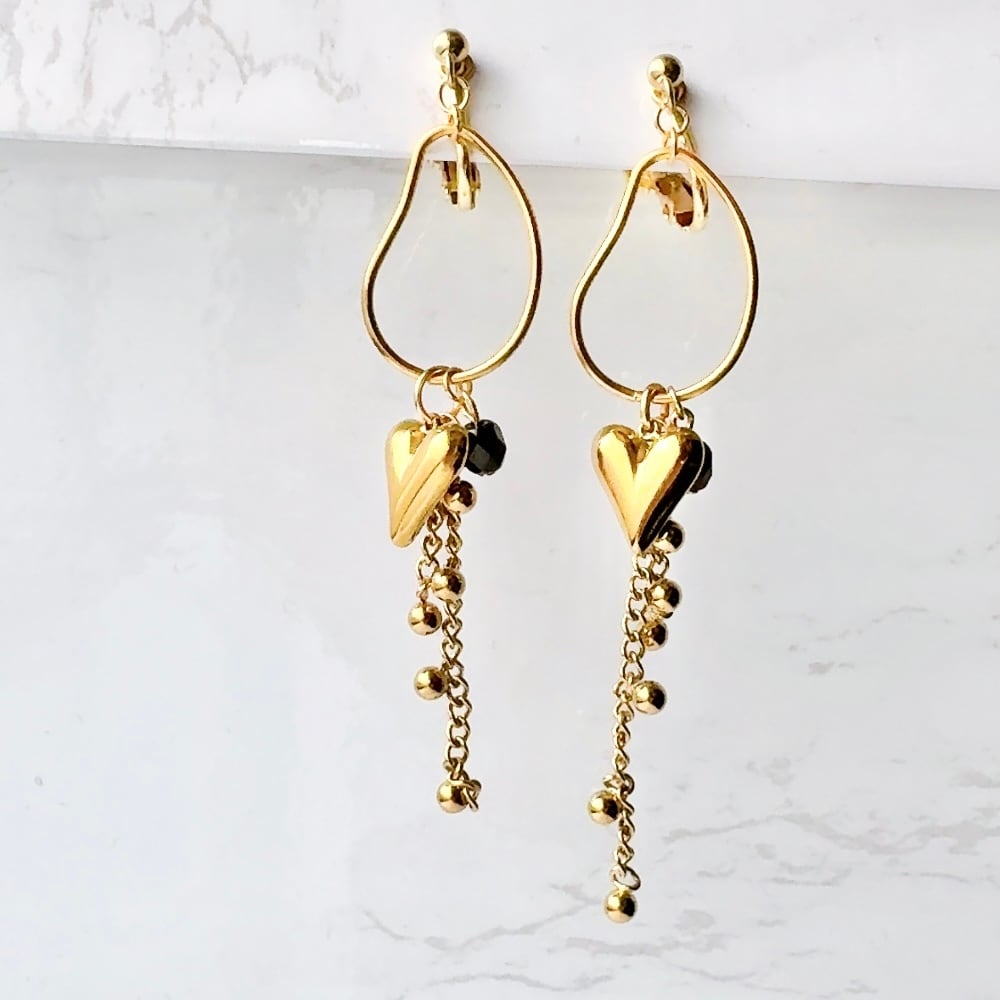 ぷっくりハートとデザインチェーンが可愛いイヤリング・ピアス。