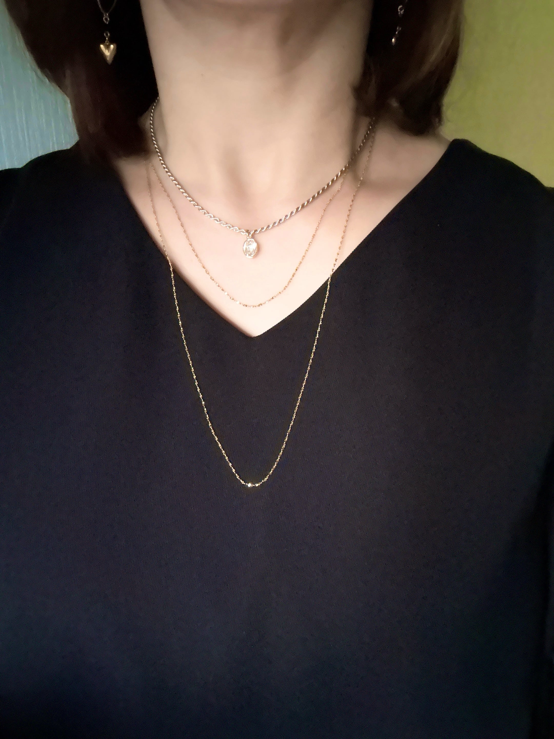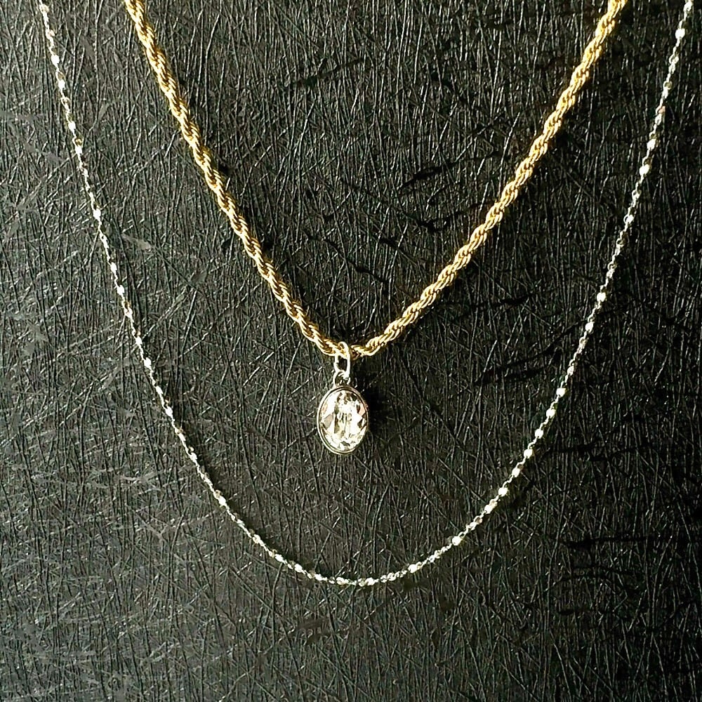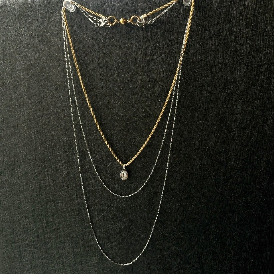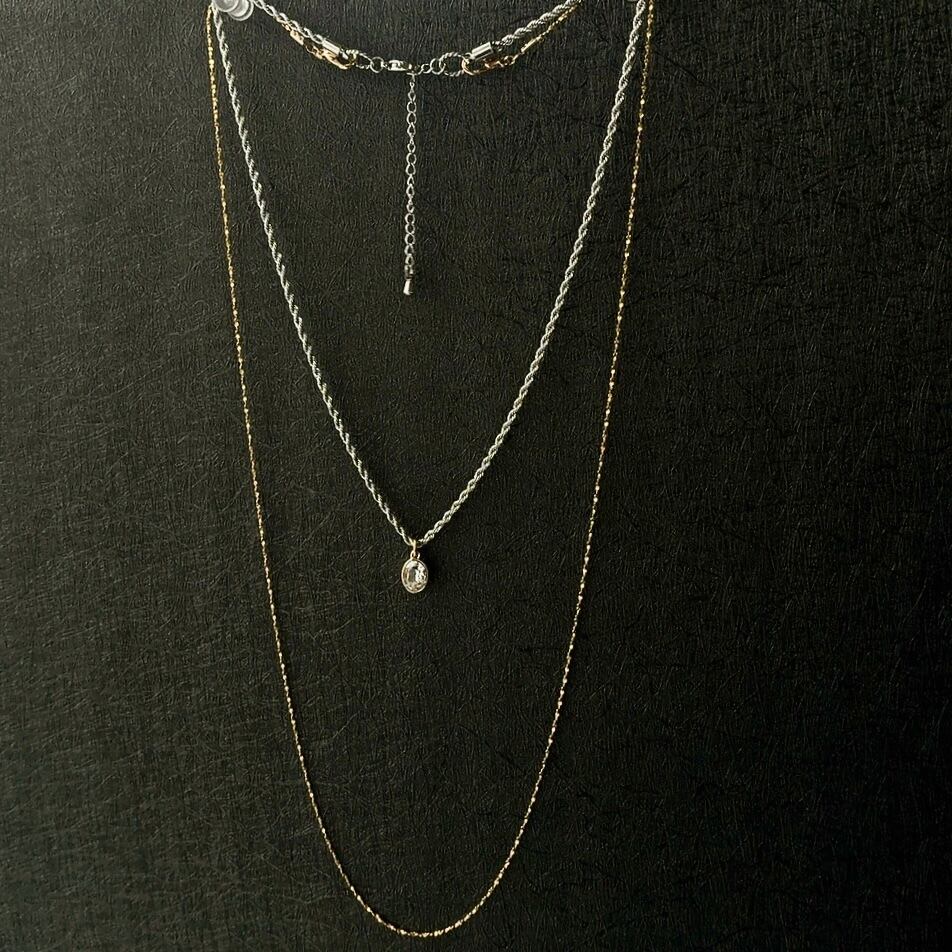 繊細なキラキラチェーンと程よい存在感のロープチェーンの3連ネックレス。