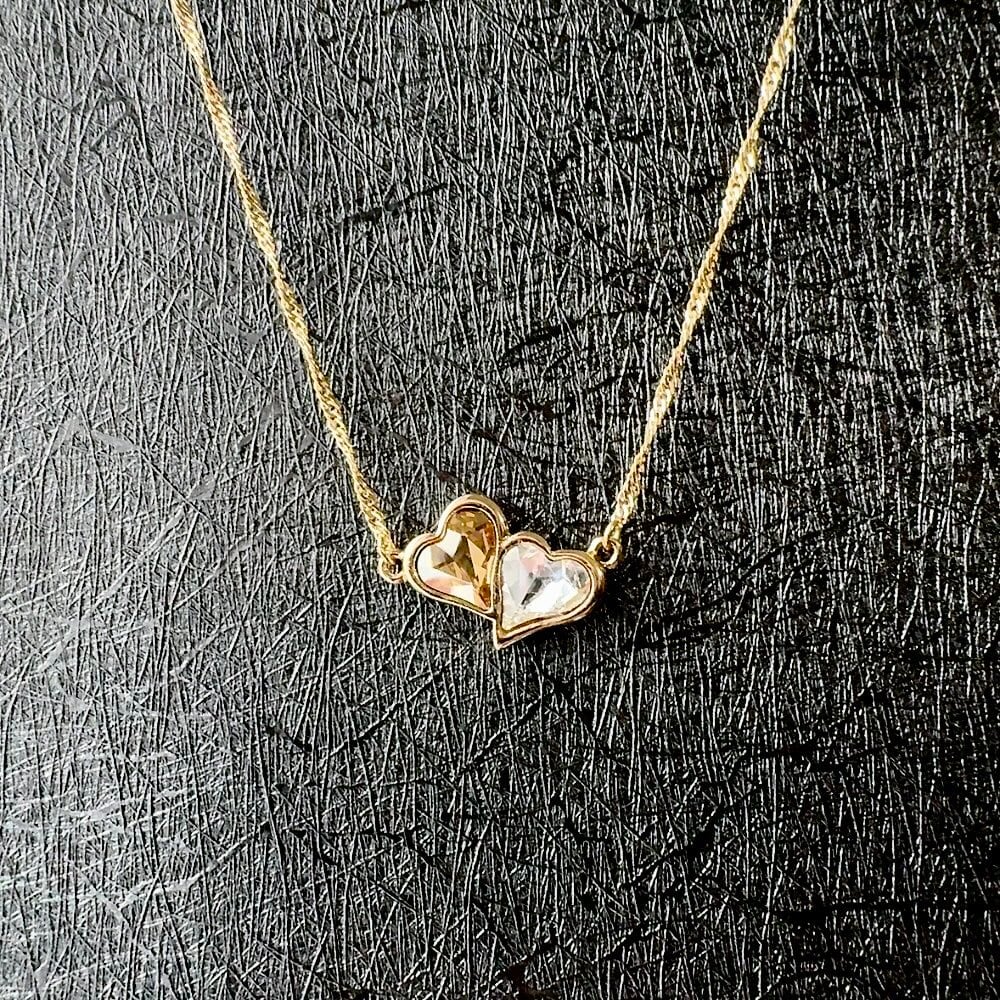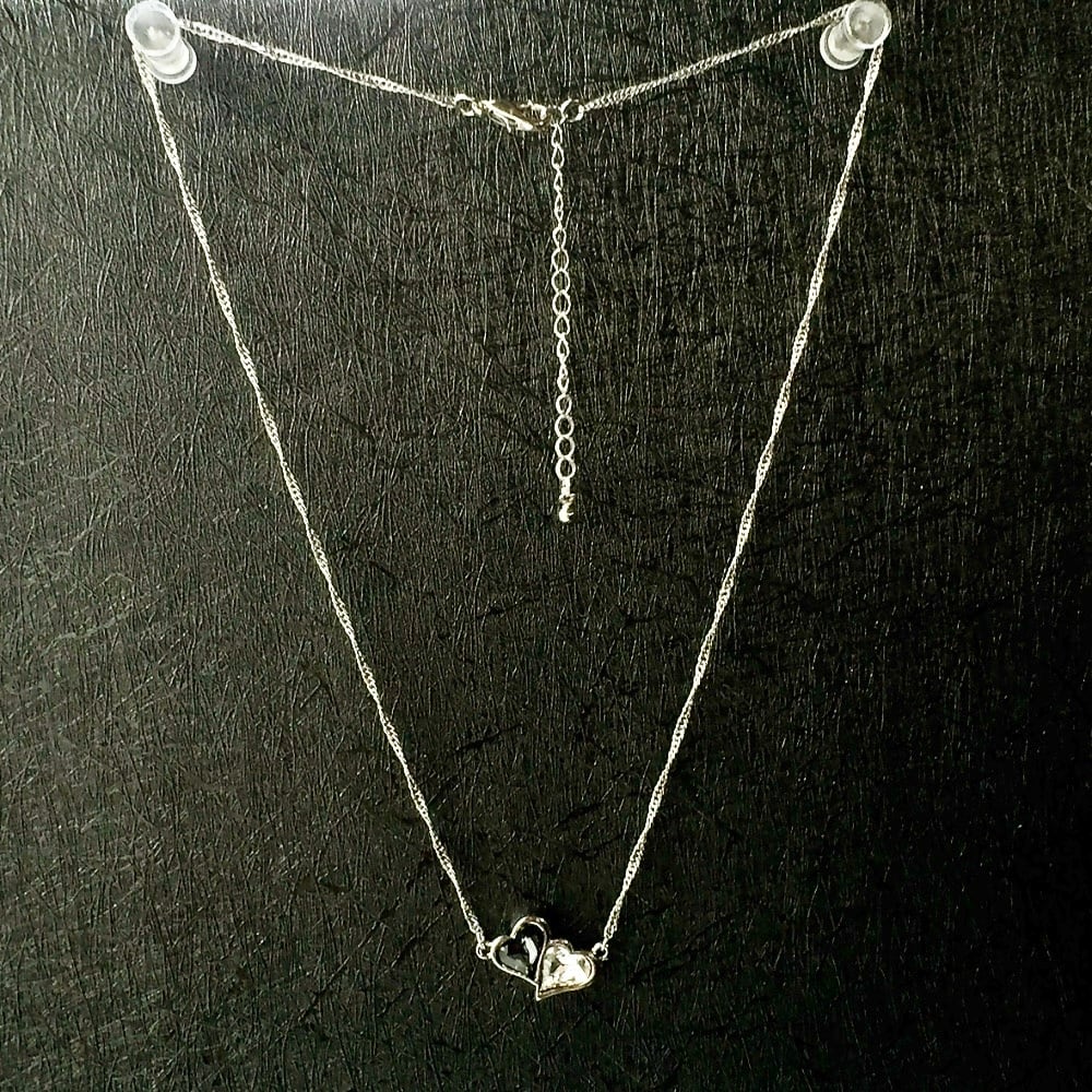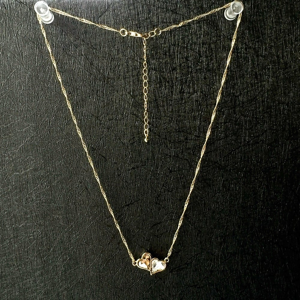 キラキラハートガラスストーンがポイントのネックレス。 短めチェーンだから、Vネックトップスとも相性が良いです。 ゴールド系は、シャンパンゴールドとクリアストーンチャーム、シルバー系は、クリアなブラックカラーのブラックダイヤモンドとクリアなストーンの2色配色です。 【素材】 ・ゴールドメッキチャーム・ロジウムメッキチャーム ・ゴールドメッキチェーン ・ガラスストーン 【サイズ】 ・チェーンの長さ約40cm