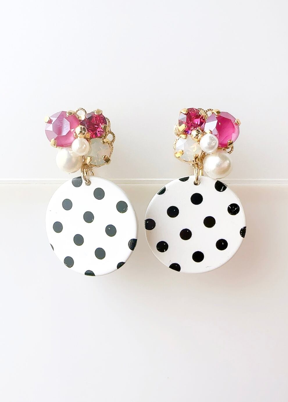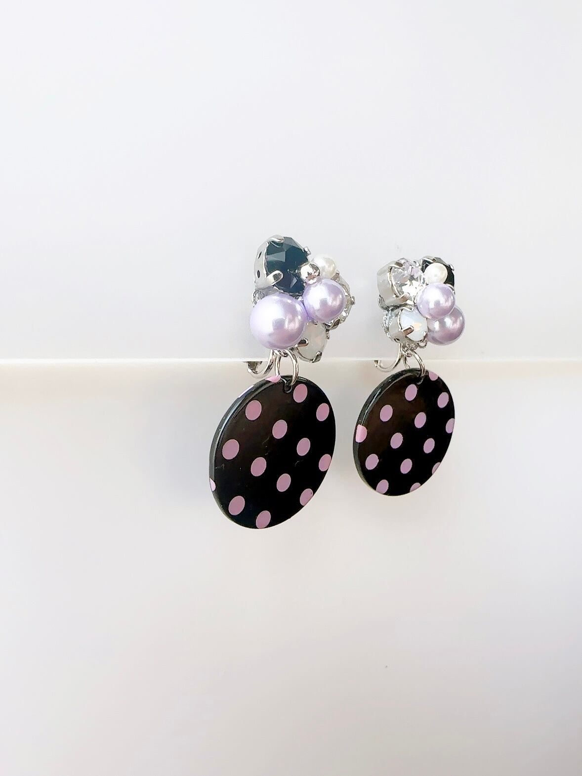 ビジュー×ドットプレートイヤリング・ピアス(パープル系・ピンク系)