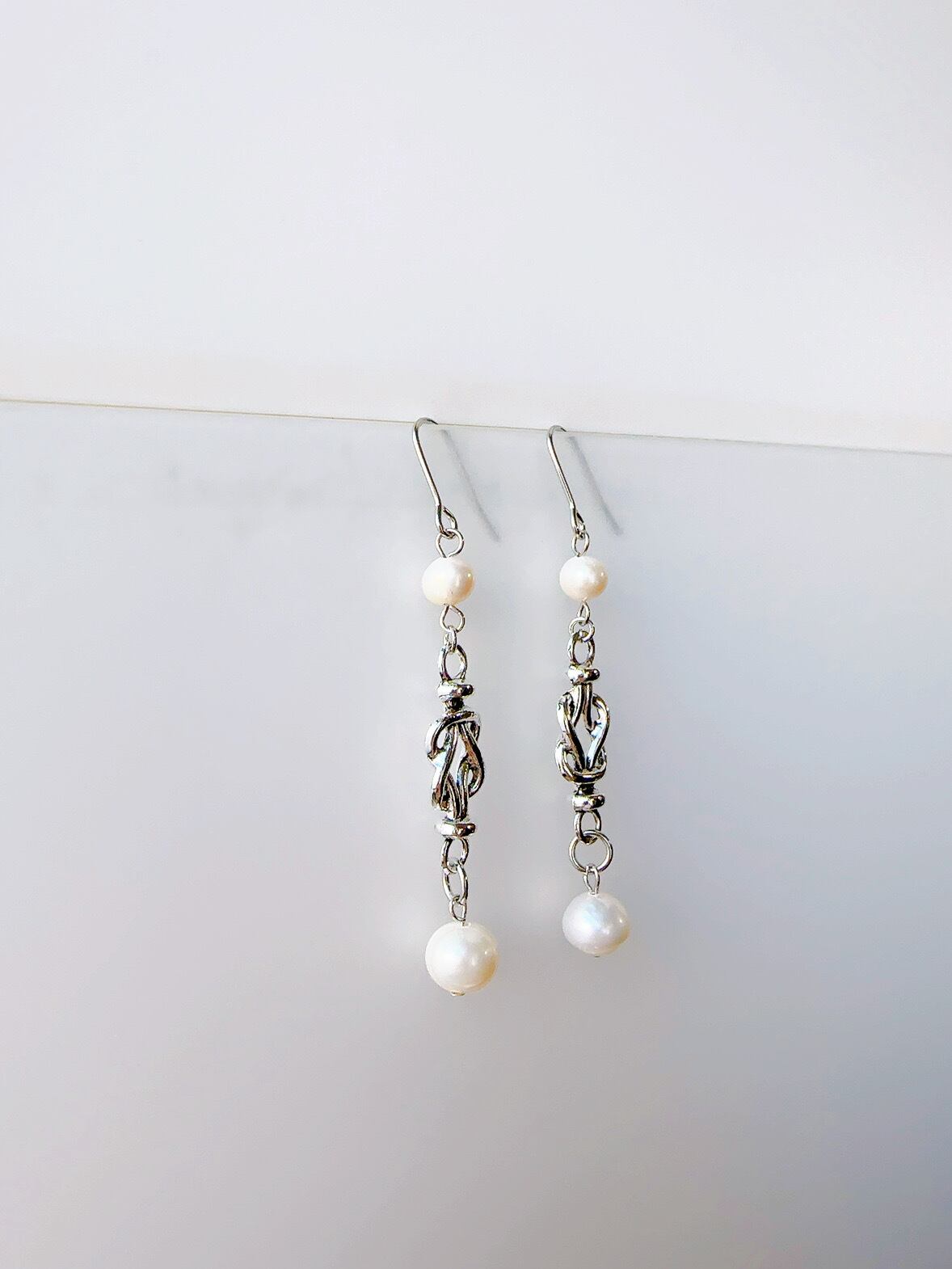 ゴシックな雰囲気のあるパーツと淡水パールのイヤリング・ピアス。